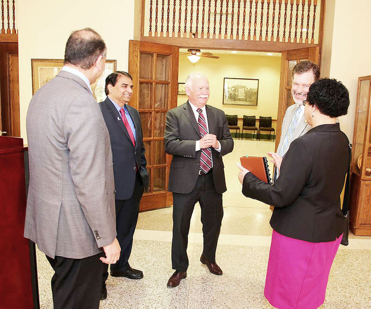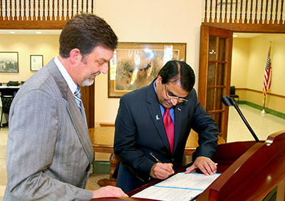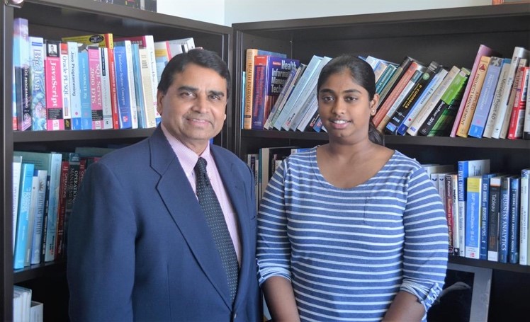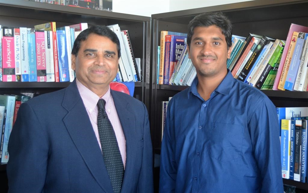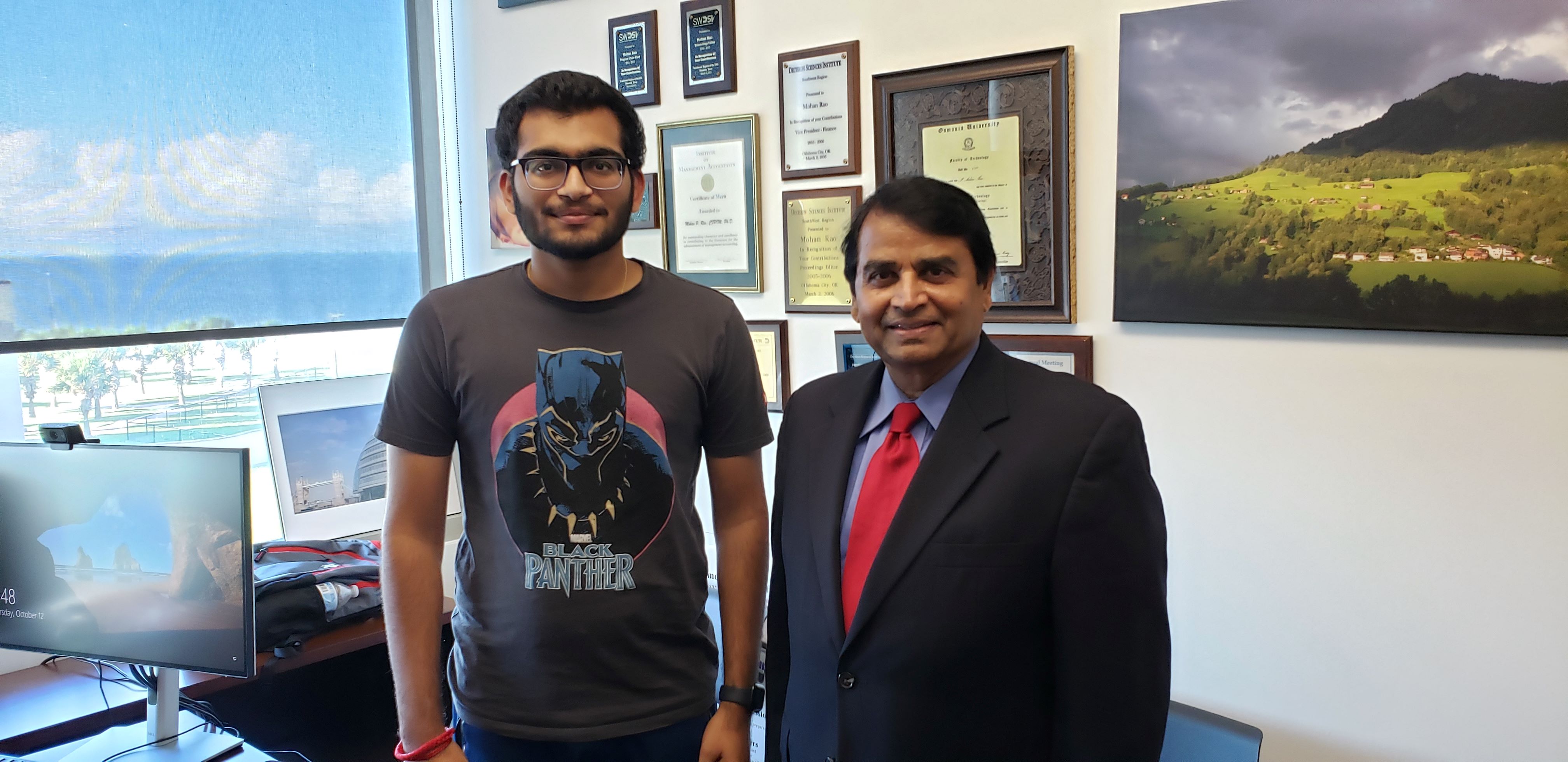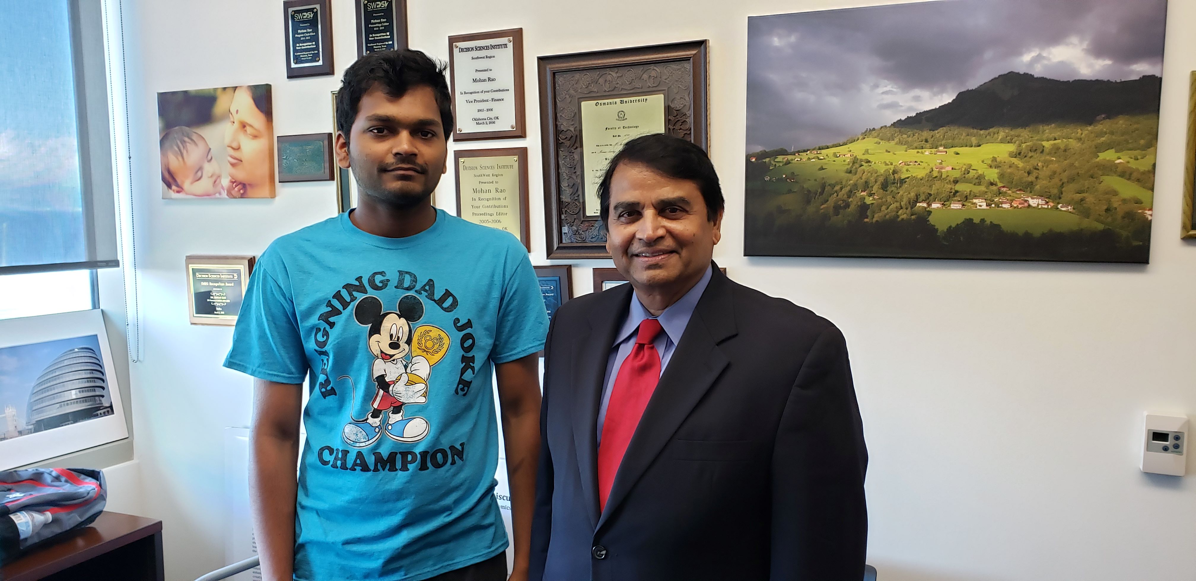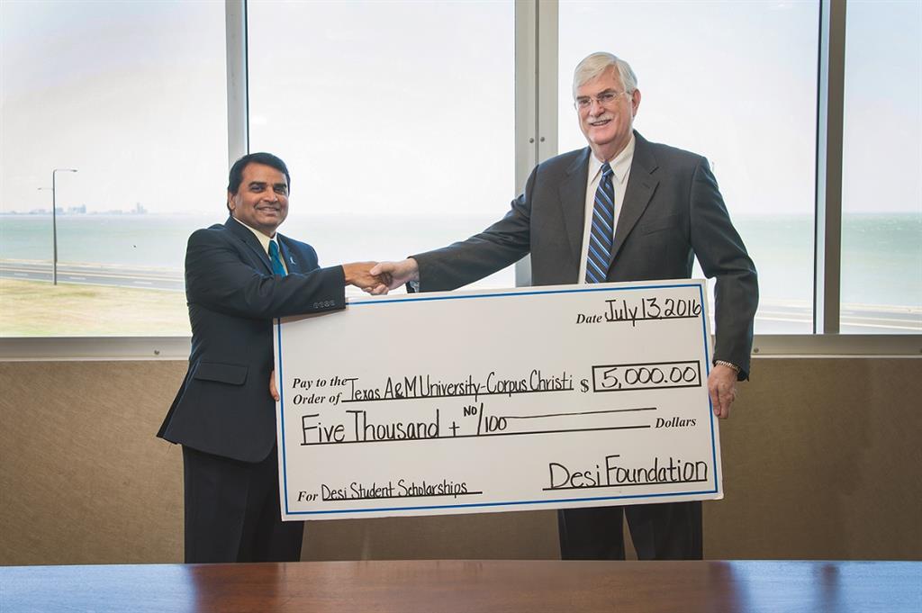 Koushik receiving his scholarship certificate from Rajan Ahuja, the CEO of SV Energy Company